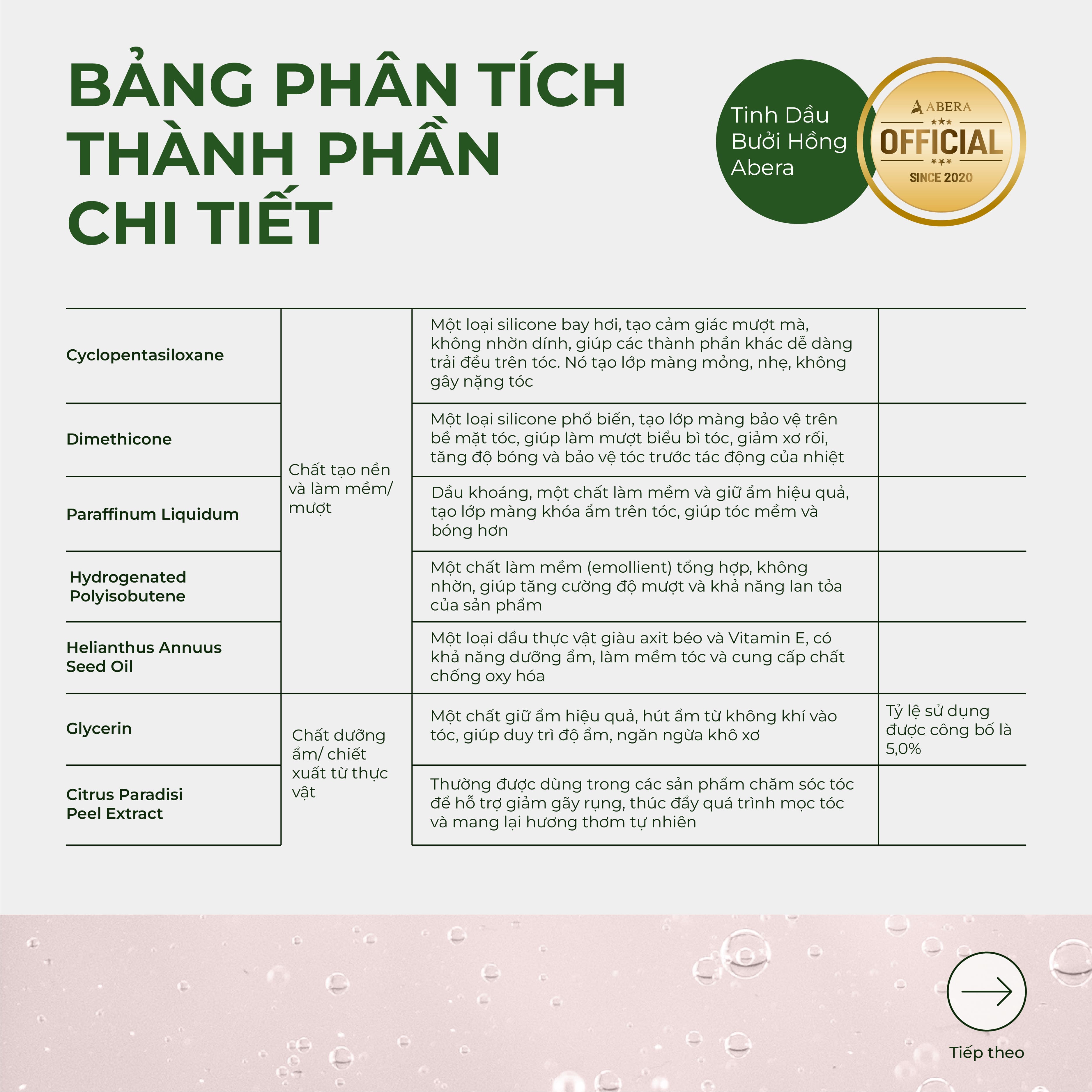 - Tam Hong grapefruit extract: Rich in vitamin C and antioxidants, helps provide nutrients to hair, making hair soft and fragrant, while effectively reducing hair loss.