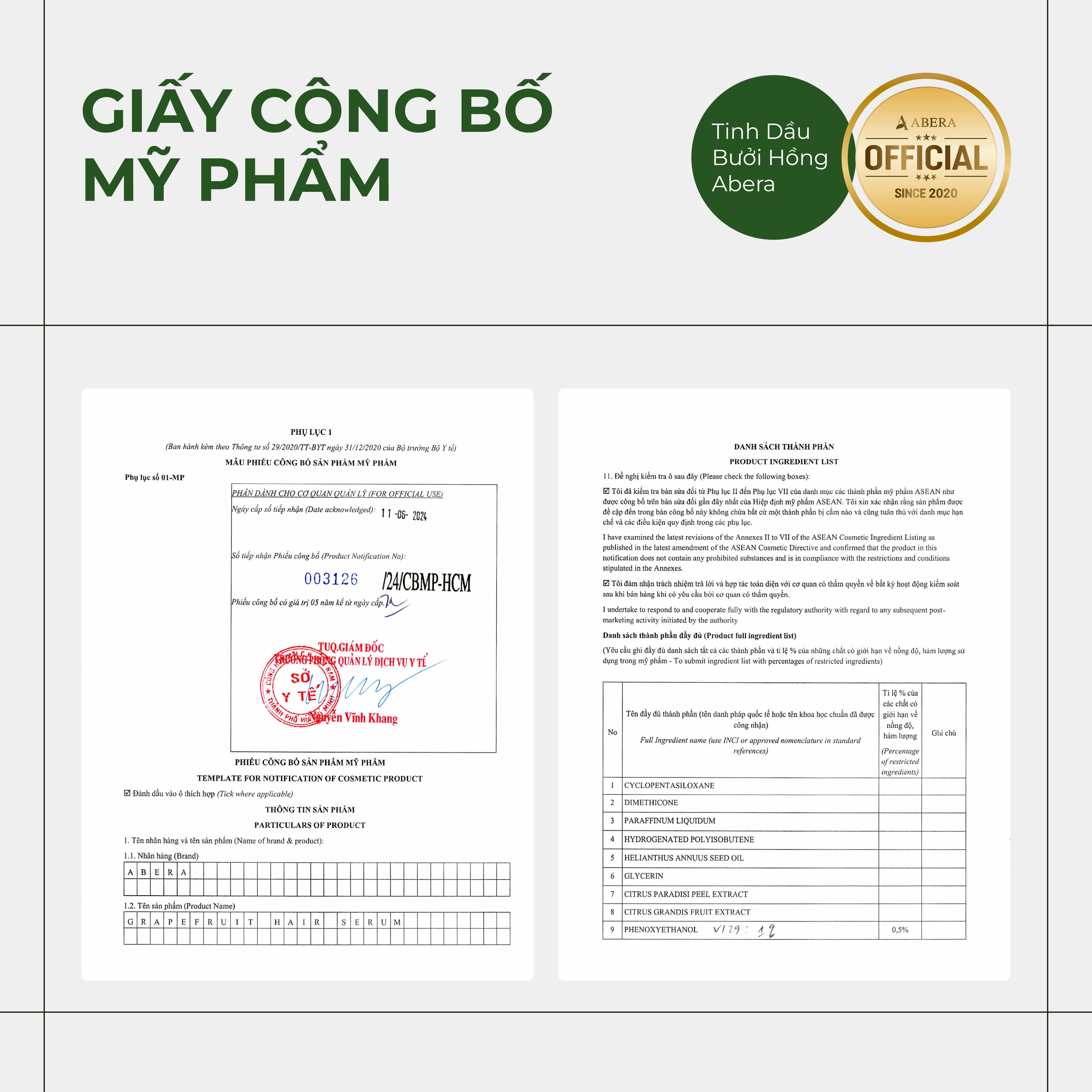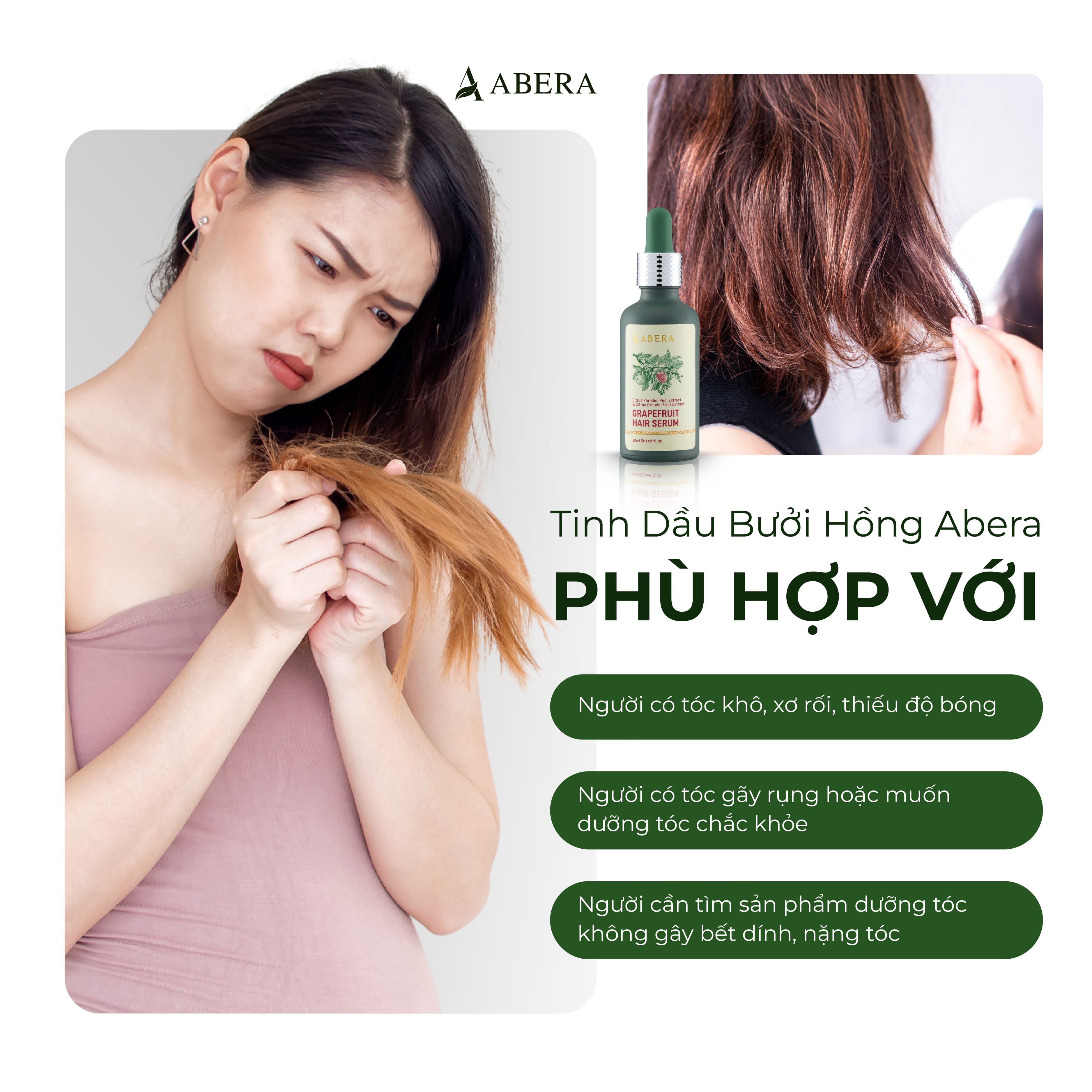 Abera Pink Grapefruit Hair Oil effectively helps reduce hair loss, while also nourishing hair to be strong and thick. The product is suitable for those experiencing issues with rough hair, split ends or frequent breakage.