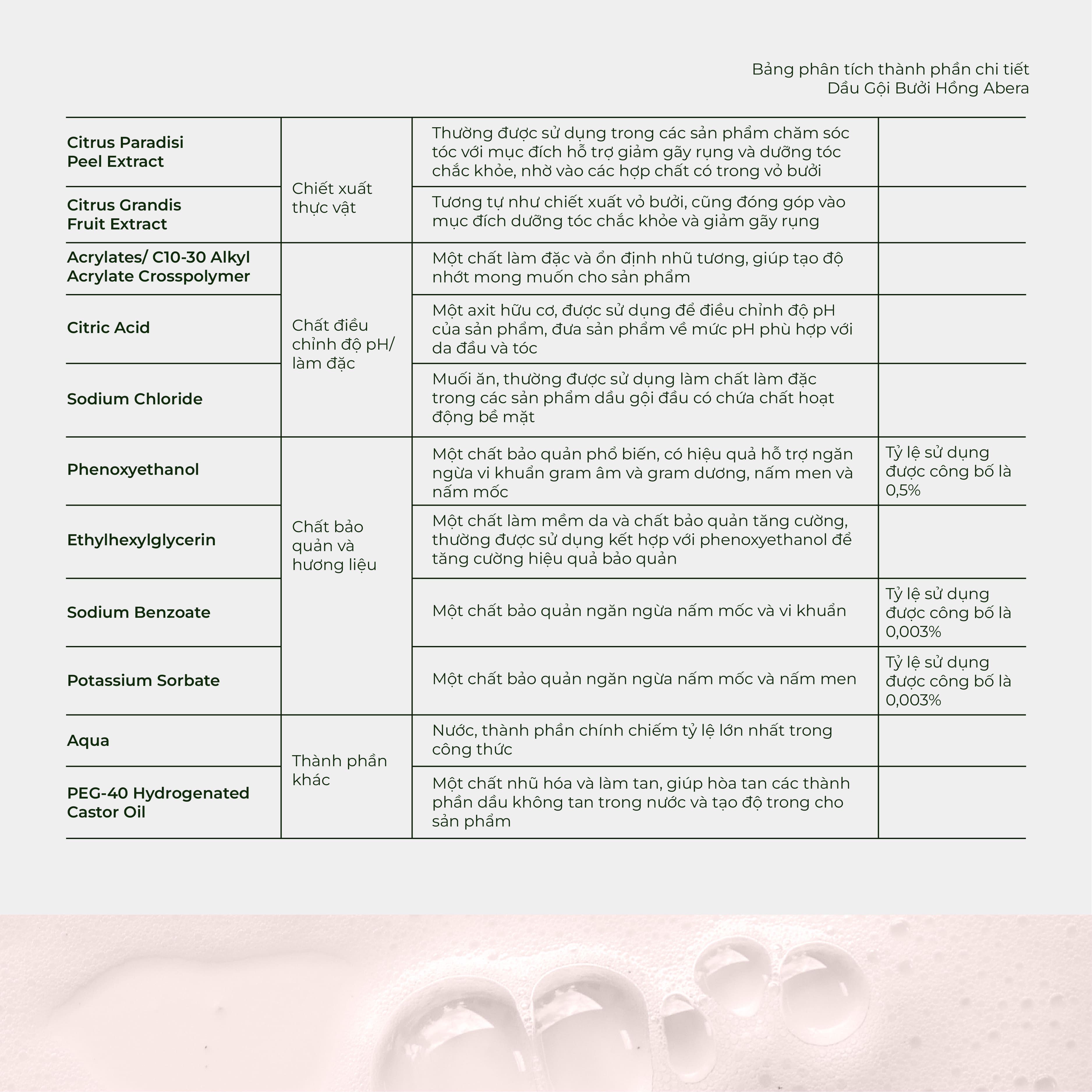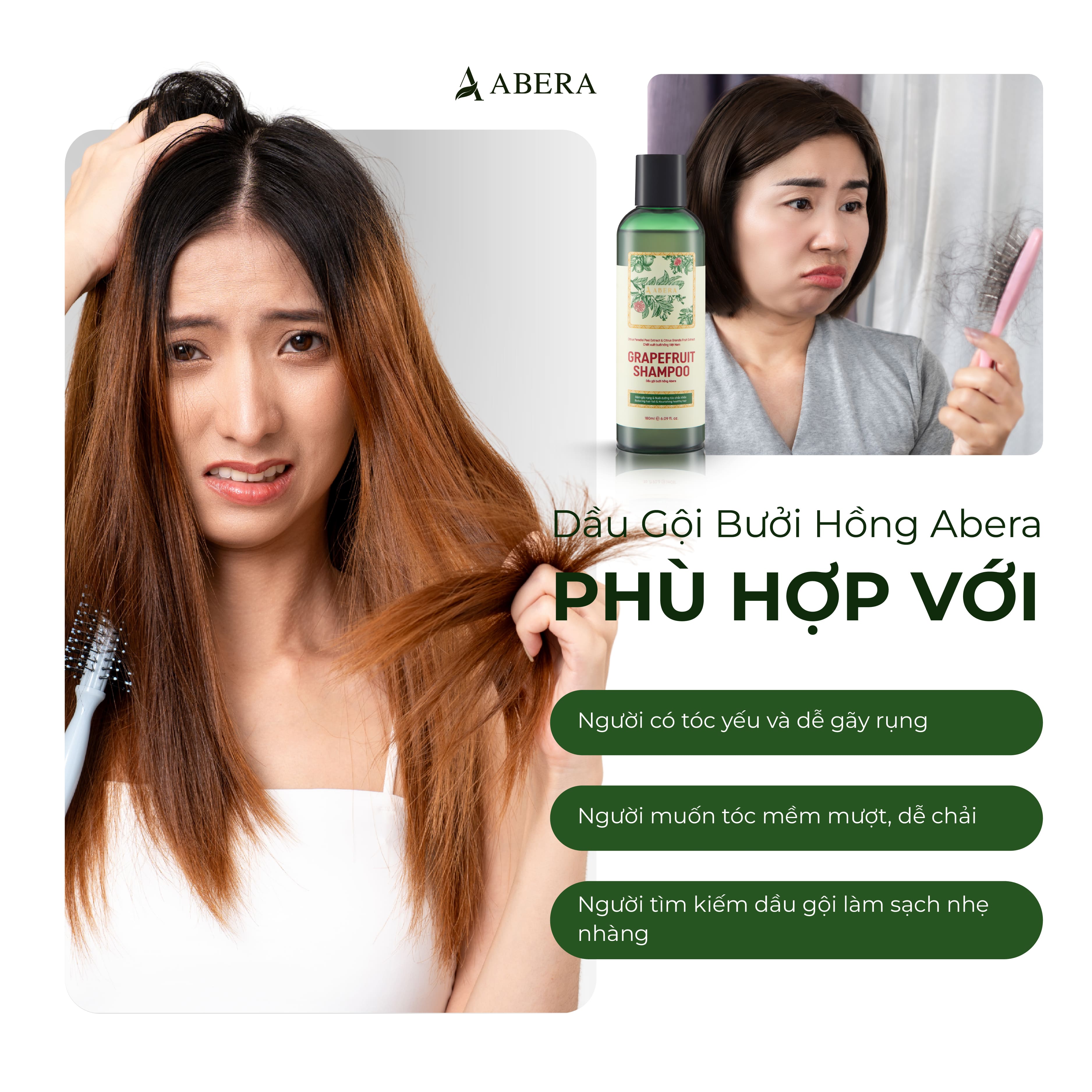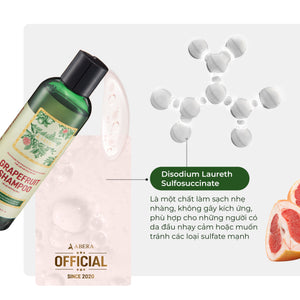 Abera Pink Grapefruit Shampoo is a special hair care product suitable for people with hair loss and damaged strands. The shampoo contains Tam Hong grapefruit extract from Tan Lap - Vinh Long, rich in vitamin C and antioxidants, helping to nourish healthy hair and protect hair from harmful environmental factors.