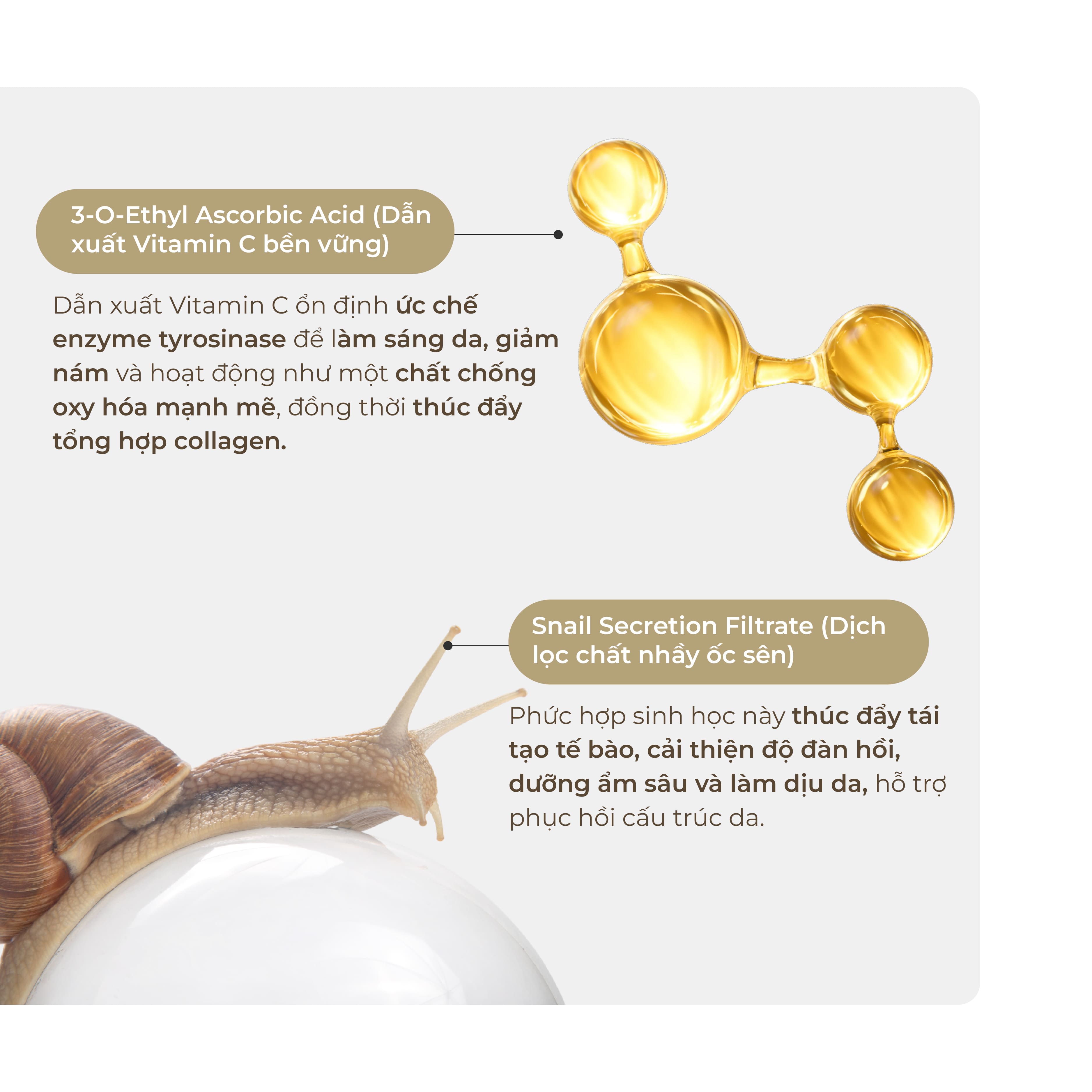 - Red reishi mushroom: Contains strong antioxidants, helps prevent melanin formation and melanin excretion, helps fade dark spots without damaging the skin.