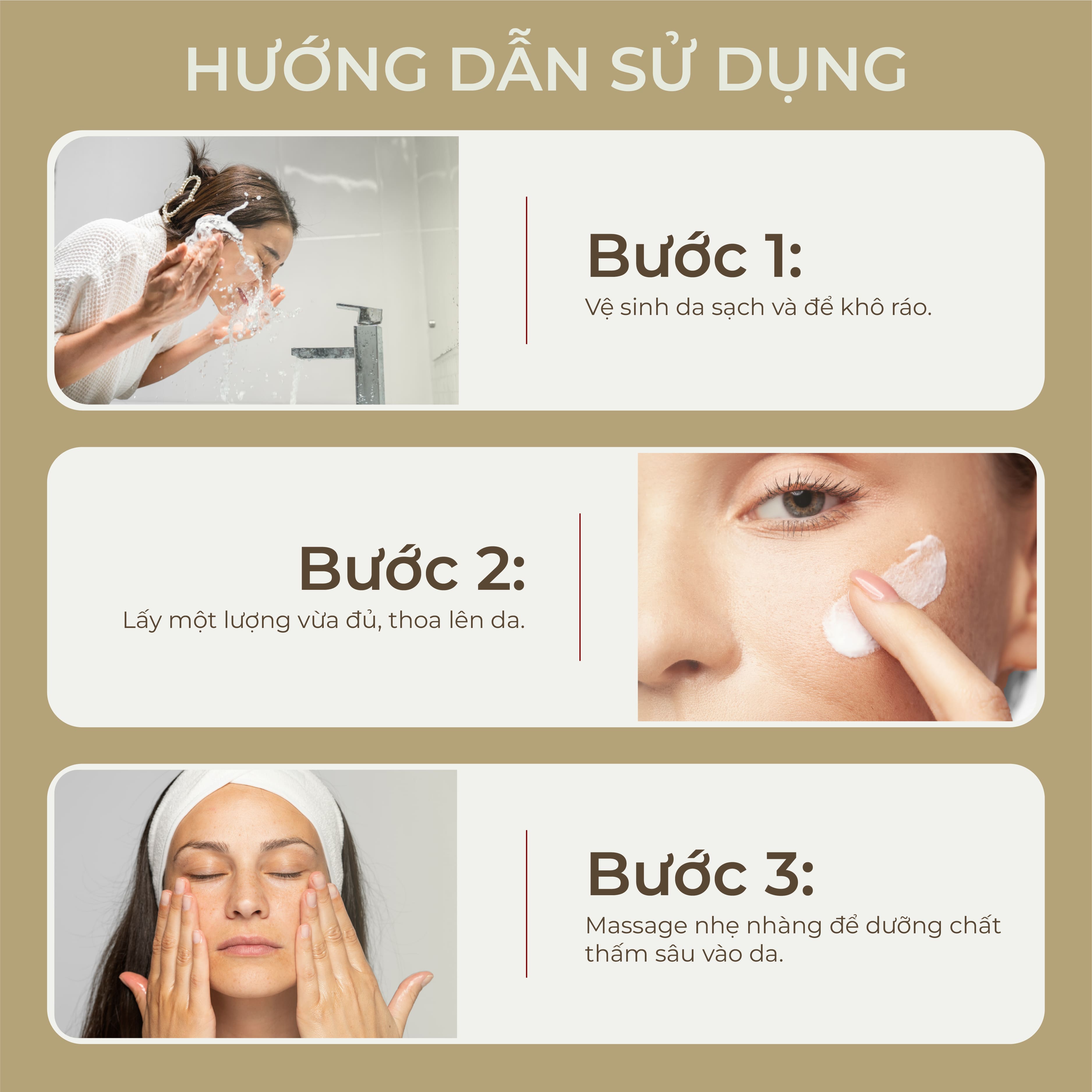 Step 2: Take an appropriate amount , apply on skin, massage gently to let the nutrients penetrate deeply into the skin.