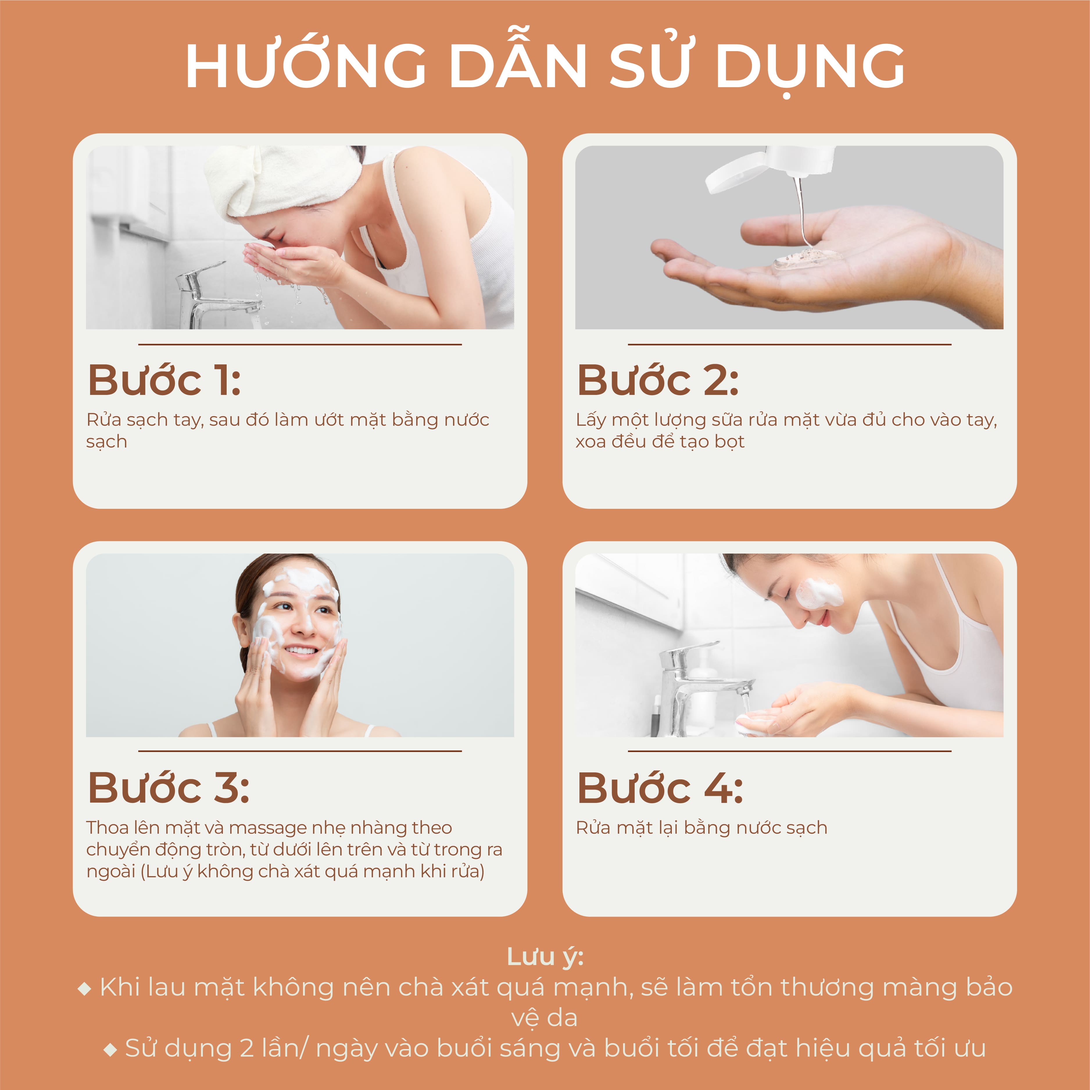 Bước 3: Thoa lên mặt và massage nhẹ nhàng theo chuyển động tròn, từ dưới lên trên và từ trong ra ngoài (Lưu ý không chà xát quá mạnh khi rửa).