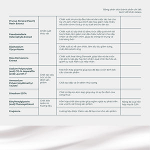 - Chiết xuất nhựa đào: Hỗ trợ làm chậm quá trình thoái hoá collagen, từ đó ngăn ngừa sự hình thành các dấu hiệu lão hoá như nếp nhăn, vết chân chim,...