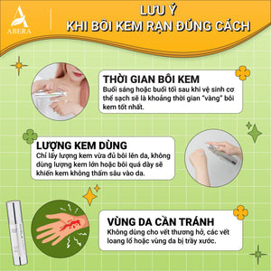 - Tốc độ phát huy hiệu quả của Kem Rạn Da Abera có thể nhanh hoặc chậm tuỳ thuộc vào cơ địa, tần suất sử dụng,...