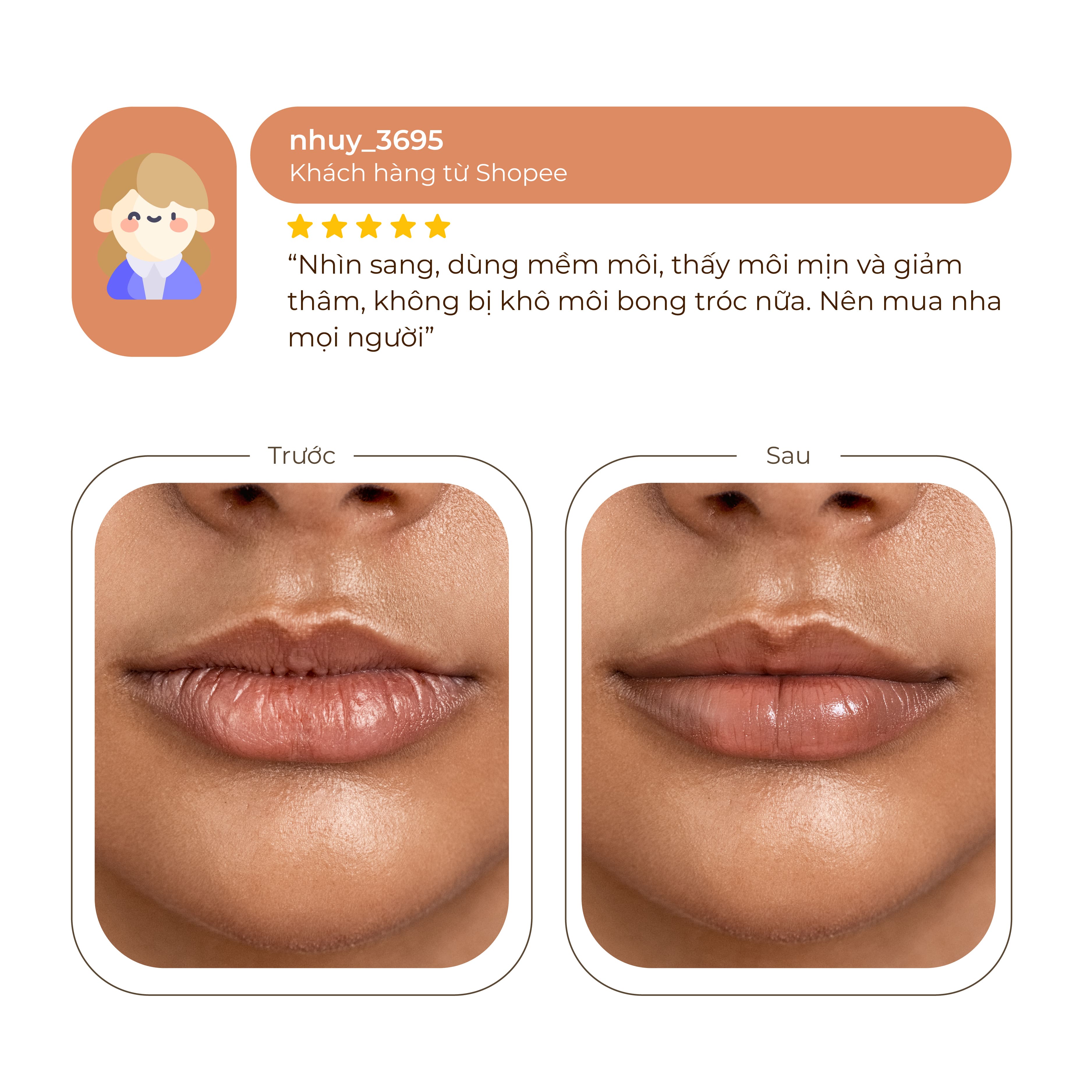 - Cải thiện tình trạng khô nứt nẻ, hỗ trợ quá trình phục hồi, lấy lại đôi môi mềm mại, căng mọng.