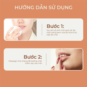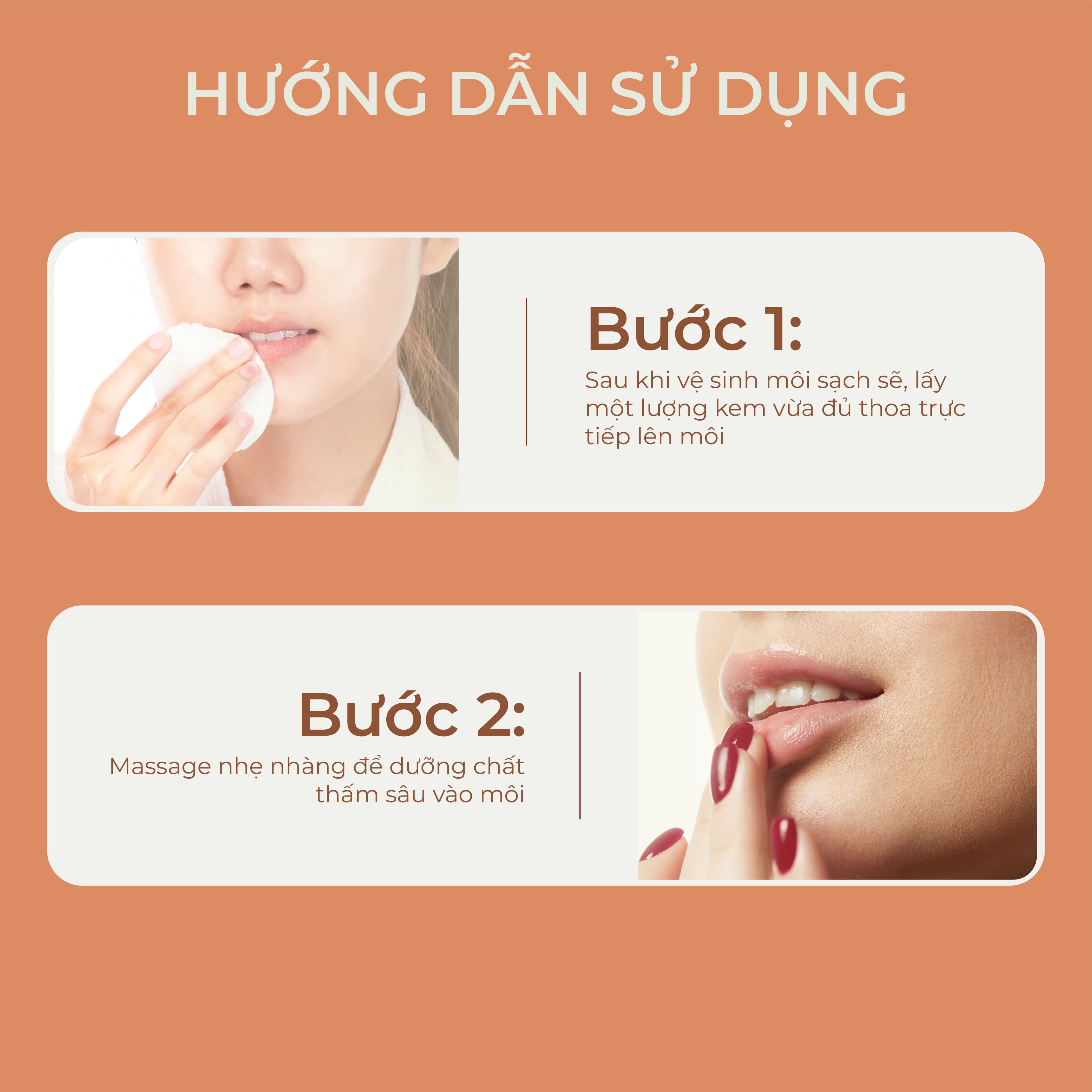 Bước 1: Sau khi vệ sinh môi sạch sẽ, lấy một lượng kem vừa đủ thoa trực tiếp lên môi.