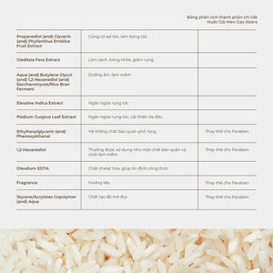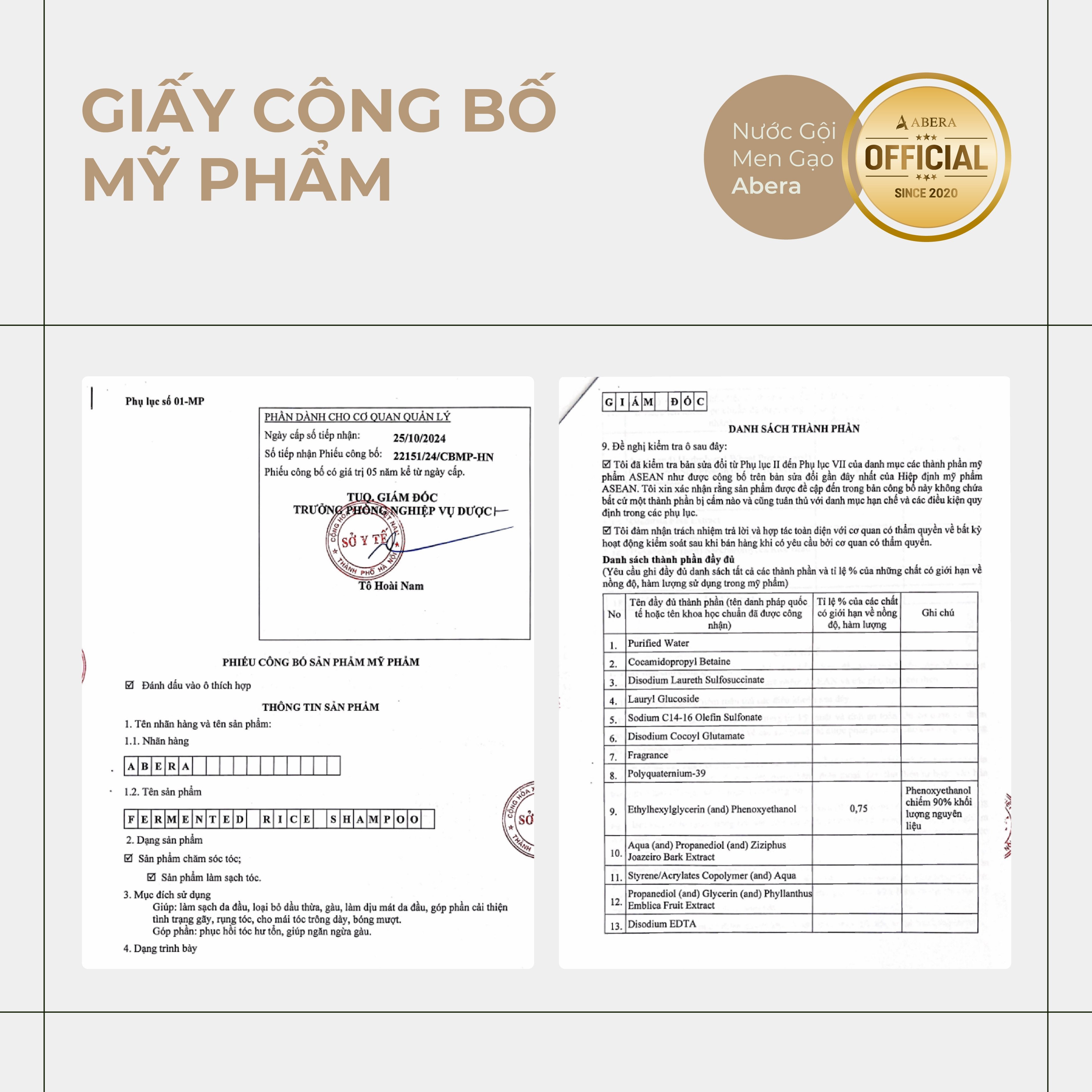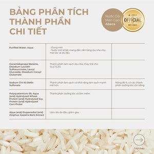 Nước Gội Men Gạo Abera nổi bật nhờ các thành phần tự nhiên được nghiên cứu kỹ lưỡng với cơ chế tác động rõ ràng.