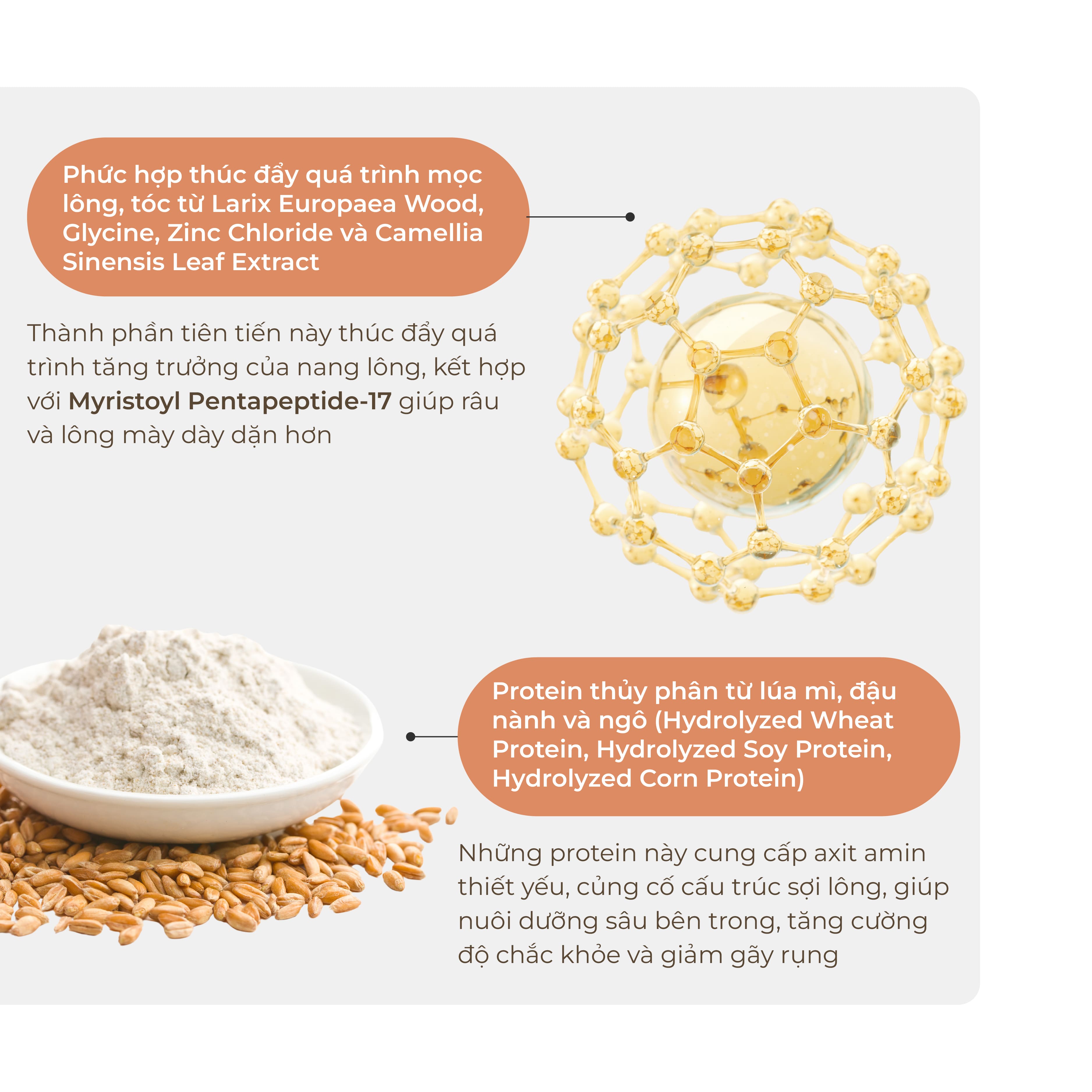 - Thúc đẩy quá trình tăng sinh collagen cho lông, tóc chắc khỏe.
